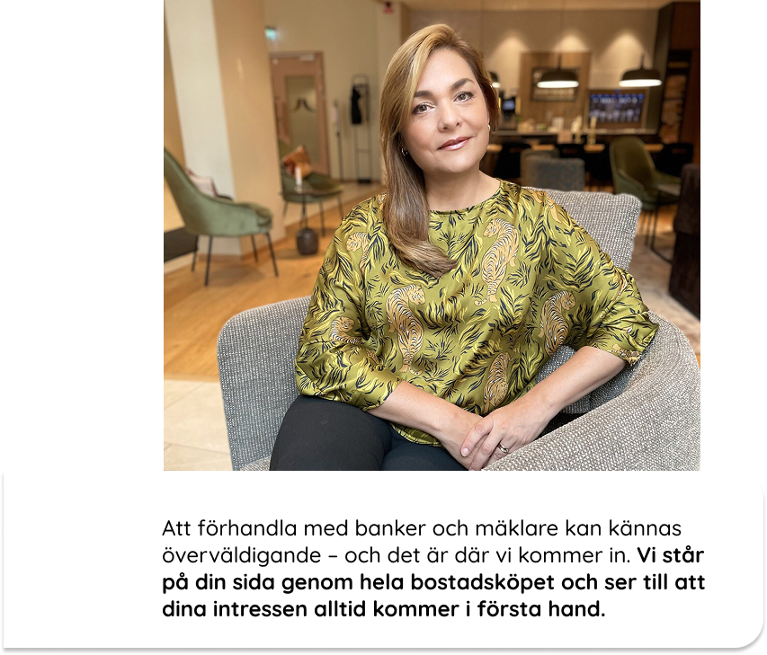 Med vår expertis förhandlar vi fram bättre villkor och ser till att du aldrig pressas till beslut. Resultatet blir en tryggare upplevelse, en smartare affär och ett bostadsköp du kan känna dig helt nöjd med.